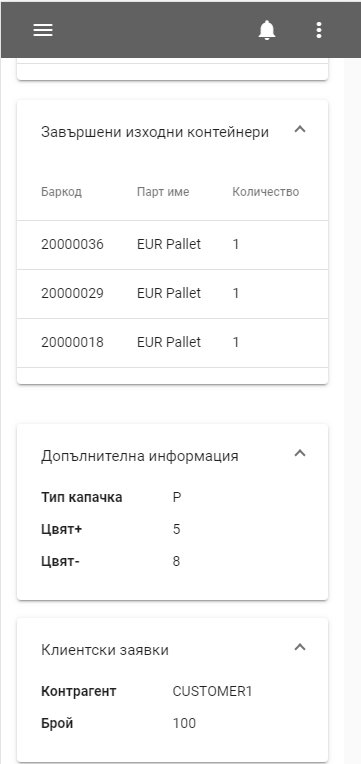 Operators see the specific requirements for this order. No confusion between similar products for different customers.