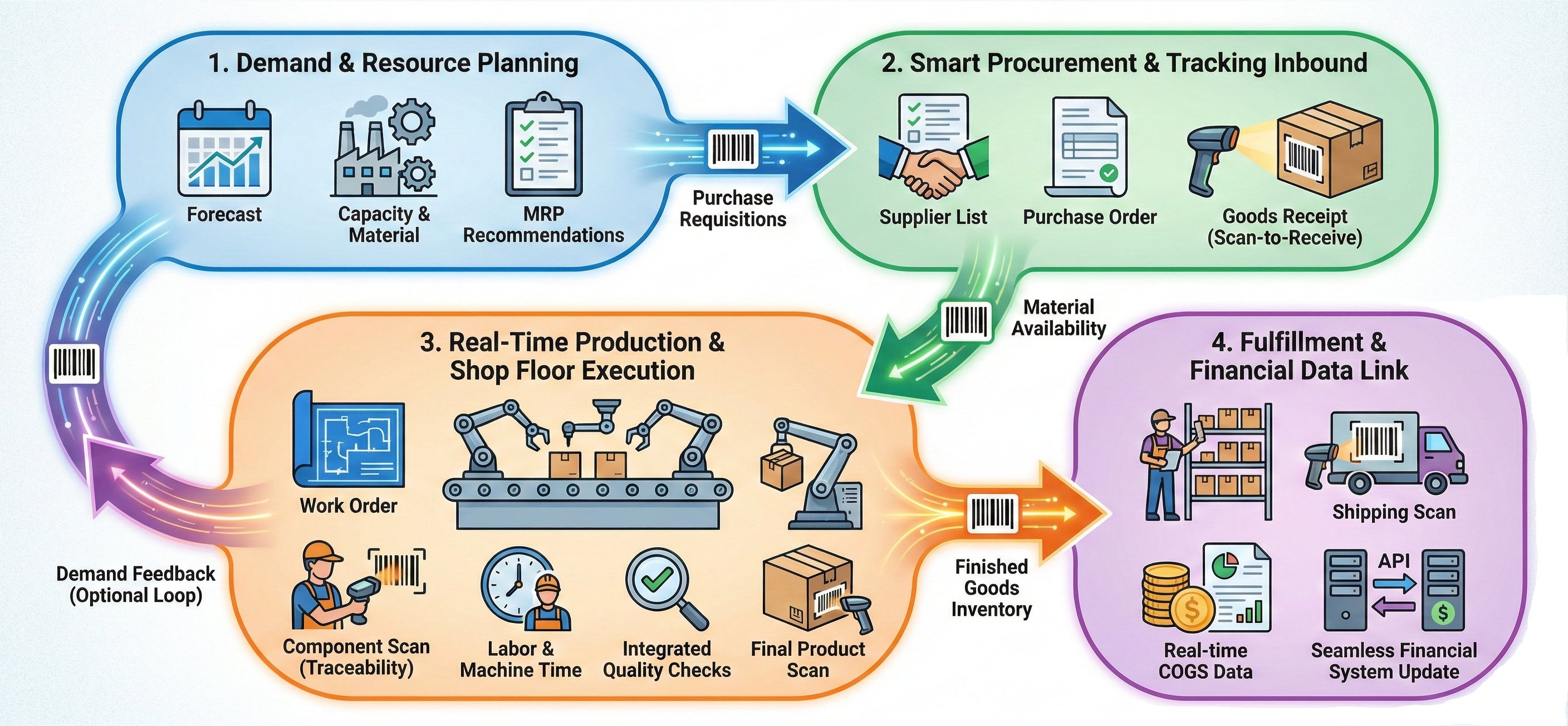 MRP translates demand into action. No more guessing if you have materials. The system tells you exactly what to order and when.