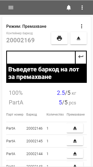 Print internal barcode label. This label follows the material forever.